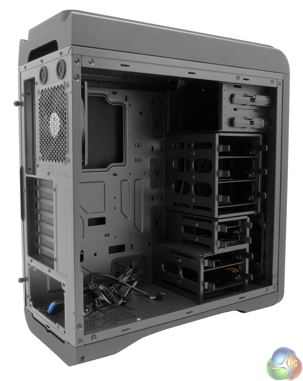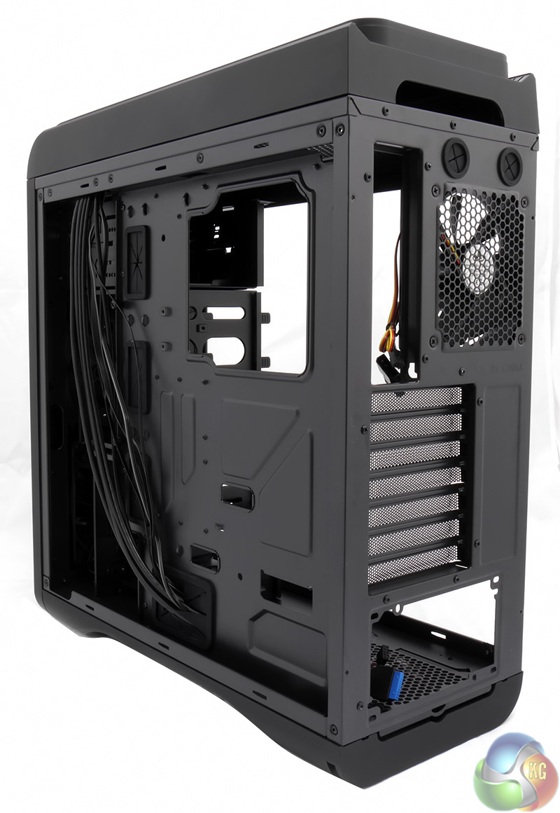 Once you have removed the panel you'll see the inside of the case holds few secrets. The power supply sits at the bottom of the case in an open area and doesn't have a covering shroud. At the rear of the case the 120mm fan sits next to the motherboard I/O panel.