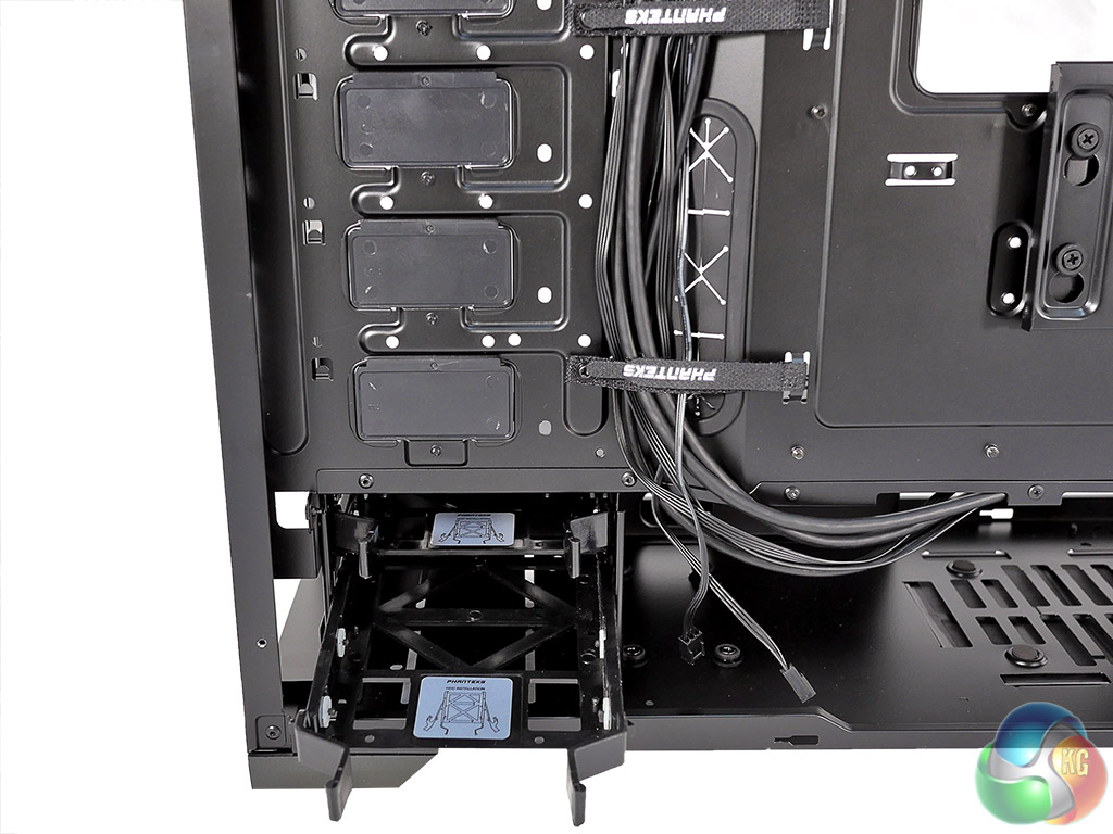 Once you move beyond a basic PC installation you will find there is a good deal of potential with Pro M. The two drive caddies in the bottom of the case are hidden out of sight and can each accommodate either a 2.5-inch or 3.5-inch drive and there are three mounting points where you can position the single 2.5-inch SSD mount. If you feel the urge you can buy accessory drive mounts from Phanteks and install another six 3.5-inch drives and two 2.5-inch drives.