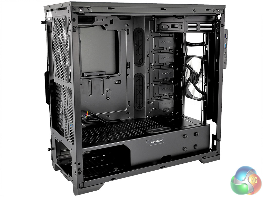 Phanteks Enthoo Pro M is a mid sized tower case that packs in a surprising number of features. Taken at face value, it looks good, is well built and has a neat power supply cover that allows you to tuck most of your cabling out of sight. The original side panel was perfectly OK, however the new tempered glass panel is absolutely superb and shows off the innards of your PC to full effect, as you can see in our photos and videos.