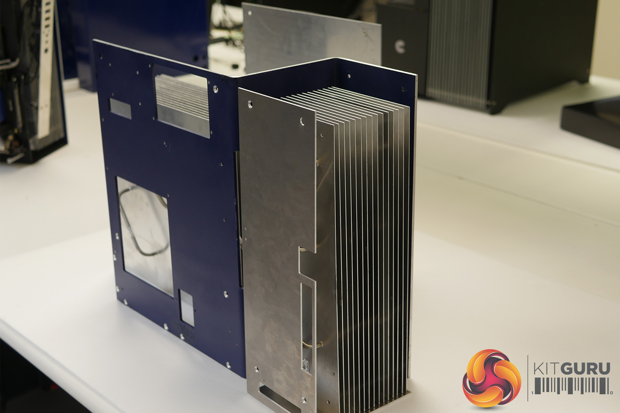 No. What you can see in the video and images above is just a prototype – Calyos are still working to finalise some details such as how users install their own hardware and the I/O options. They are also keen to improve the aesthetics of the chassis, to the extent they are working with some French modders to implement a visual overhaul of the NSG-S0. They also told us the loop heat pipe tubing is likely to be sleeved, while the CPU/GPU blocks should be flattened.