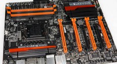 The GA-Z87X-OC is a stunning looking board, built around a black PCB with bright orange memory and graphics card slots. Gigabyte told us before launch that it should be priced in the competitive sub £200 sector.