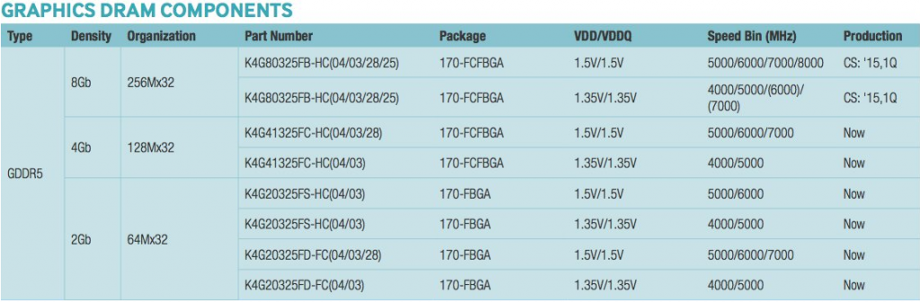 According to Chinese VR-Zone web-site, who managed to obtain an excerpt from a Samsung’s document, the world’s largest maker of dynamic random access memory (DRAM) will start to sample 8Gb GDDR5 memory devices in the first quarter of 2015. The new 8Gb memory ICs will operate at various data-rates up to 8MT/s, therefore, will be able to address all possible graphics solutions.