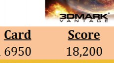 The way I see it a HD6950 With the Bios Tweak Will score +/-P24K in 3Dmark Vantage And that is 220P.(109 points per Quid)