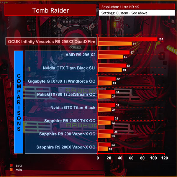 To get smooth, consistent 120 fps game play at 3,840 x 2,160hz (4k) resolutions, you would need massively powerful graphics hardware if you want to play the latest DX11 games at high image quality settings (we see no reason to be dropping image quality at 4k, as moving to 4K is all about ‘image quality'). In one of our latest reviews, we pitted 2 x R9 295 X2 graphics cards against some of the most visually impressive games available today and even those two couldn't hold a constant 120fps.