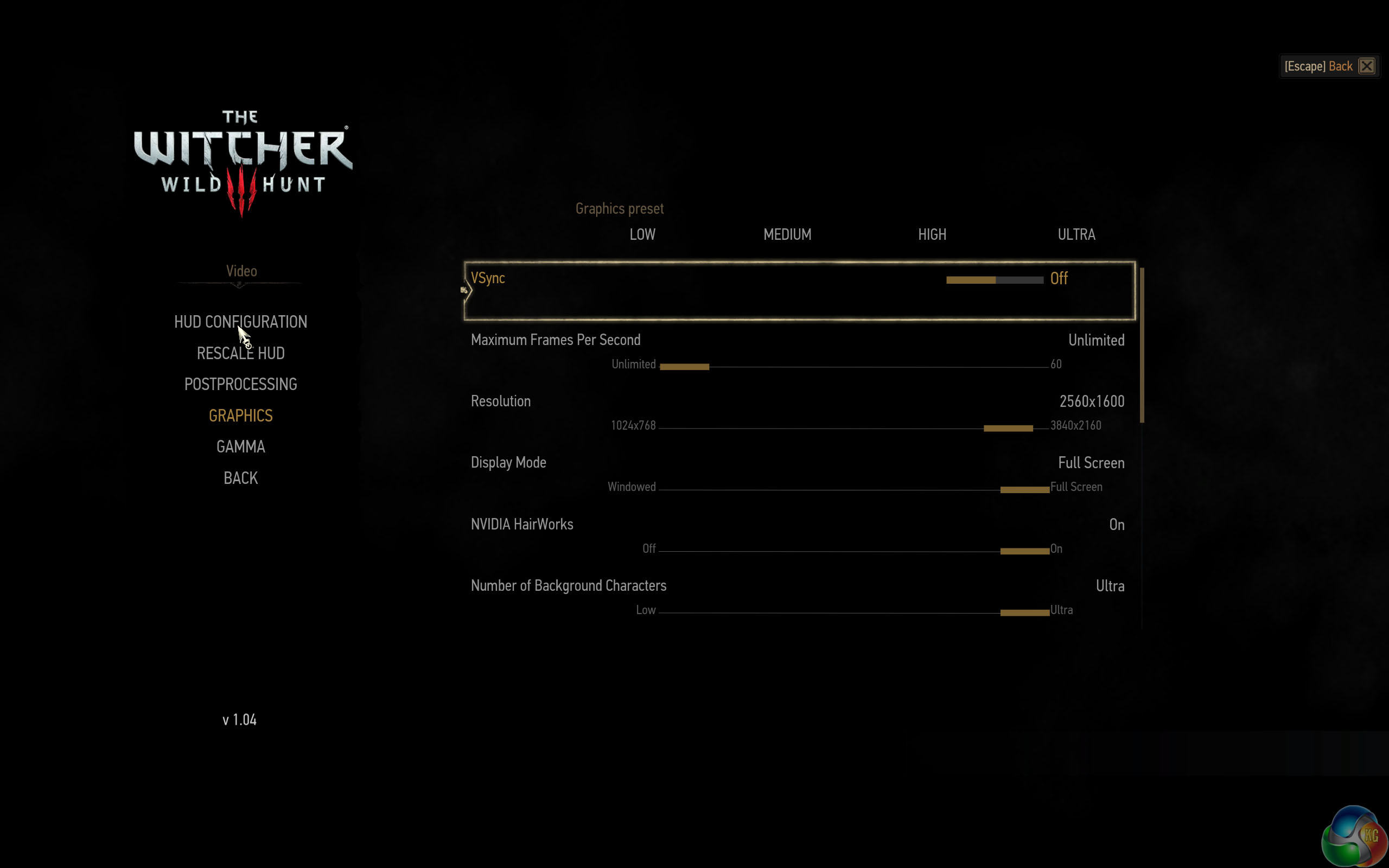 We select a 2560×1600 resolution with postprocessing at ‘HIGH' and graphics at ‘ULTRA', as shown above.