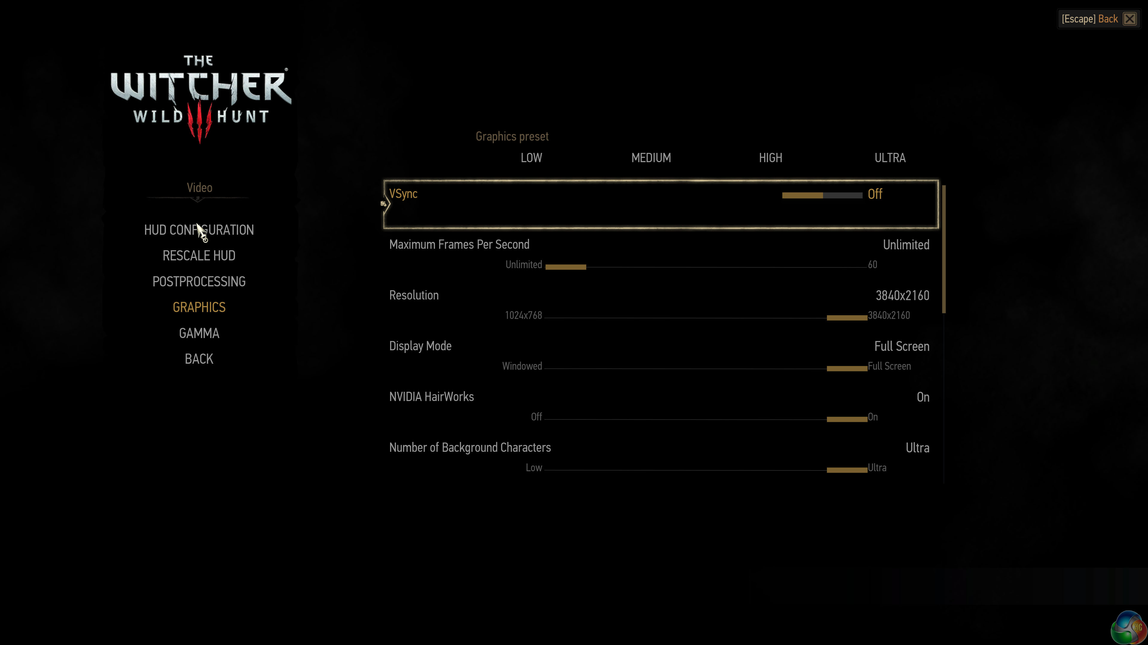 We select a 3840×2160 (Ultra HD 4K) resolution with postprocessing at ‘HIGH' and graphics at ‘ULTRA', as shown above.