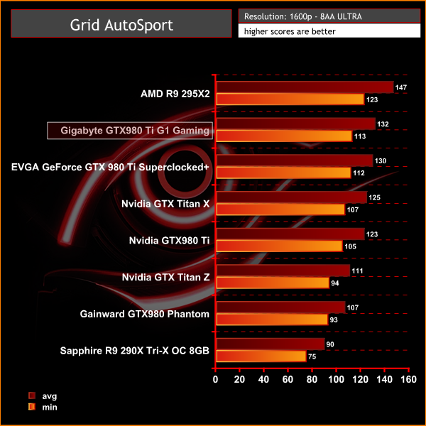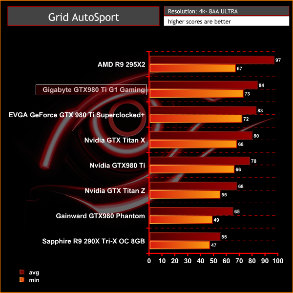 The Gigabyte GTX980 Ti G1 Gaming averages 72.3 frames per second, putting it around 7 frames behind the Nvidia Titan Z.