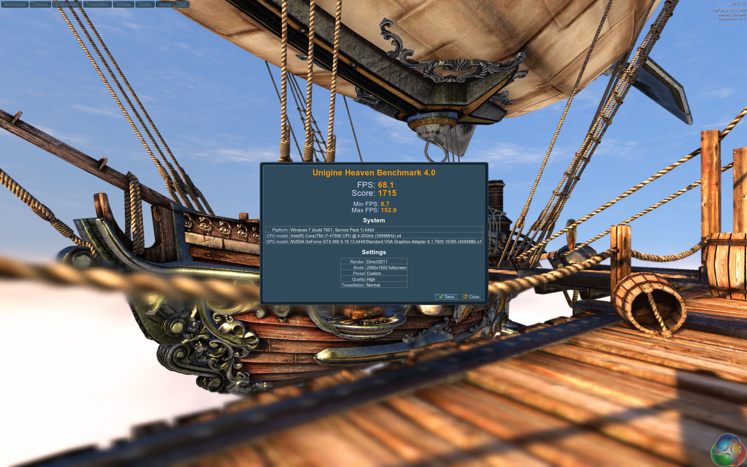 Superb results, averaging just over 68 frames per second, putting the Inno3D GTX 980 ‘iChill Herculez X4 Air Boss Ultra' into top position in our graph.