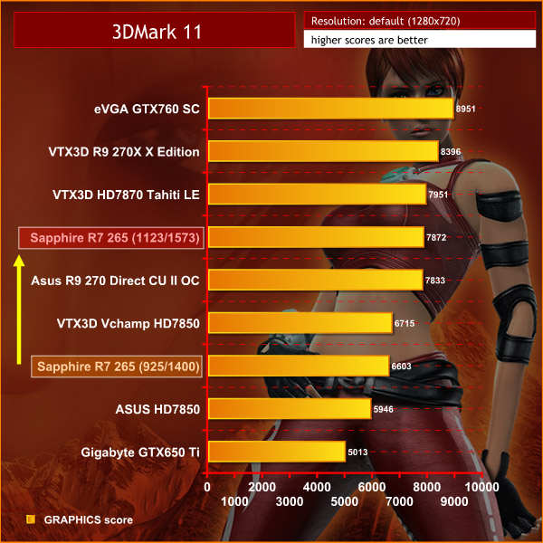 Performance of both cards is very good, just edging ahead of the Sapphire R7 265 Dual X and VTX3D Vchamp HD7850.