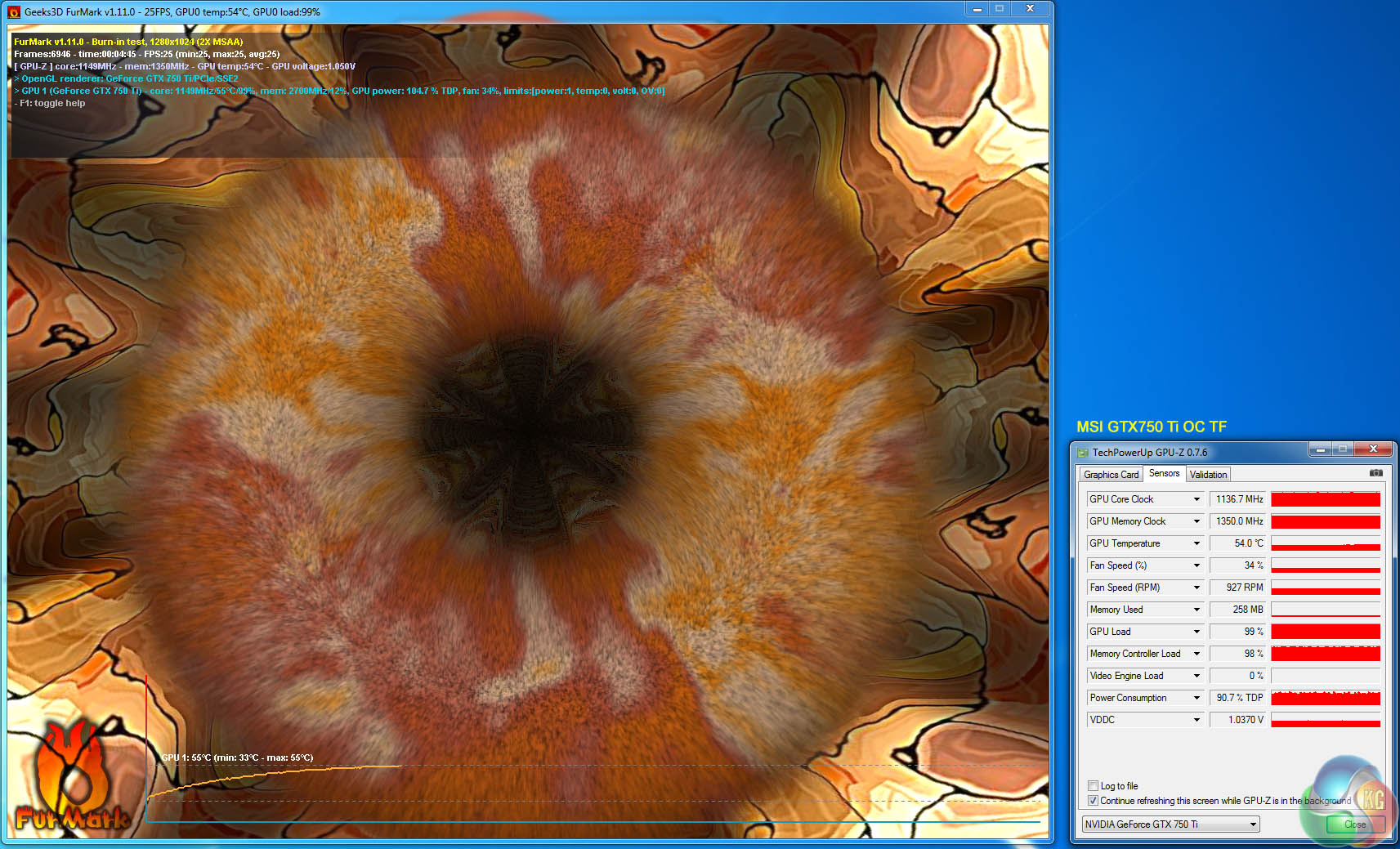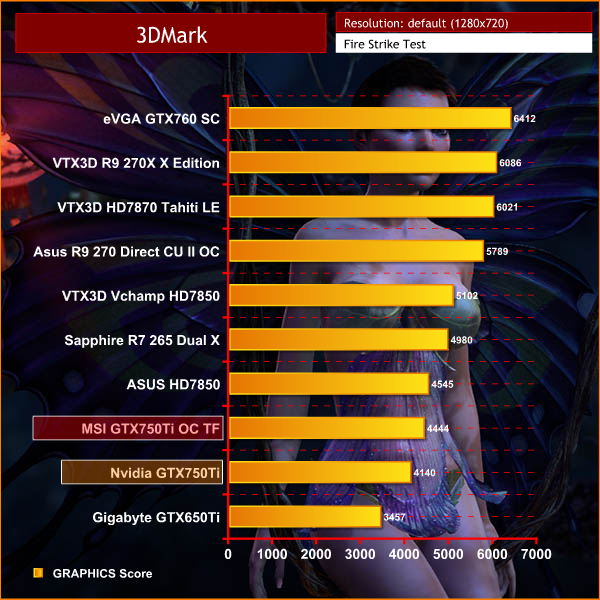 I have been extremely impressed with the MSI GTX750 TI OC Twin Frozr graphics card. While it struggles to match the AMD R7 265 at 1080p, The new Nvidia Maxwell design is undoubtedly a great step forward in regards to dropping power demand, noise and heat output. When it comes to frame rate performance, when overclocked, the GTX750Ti OC manages to outclass the reference clocked HD7850, while consuming almost half the power.