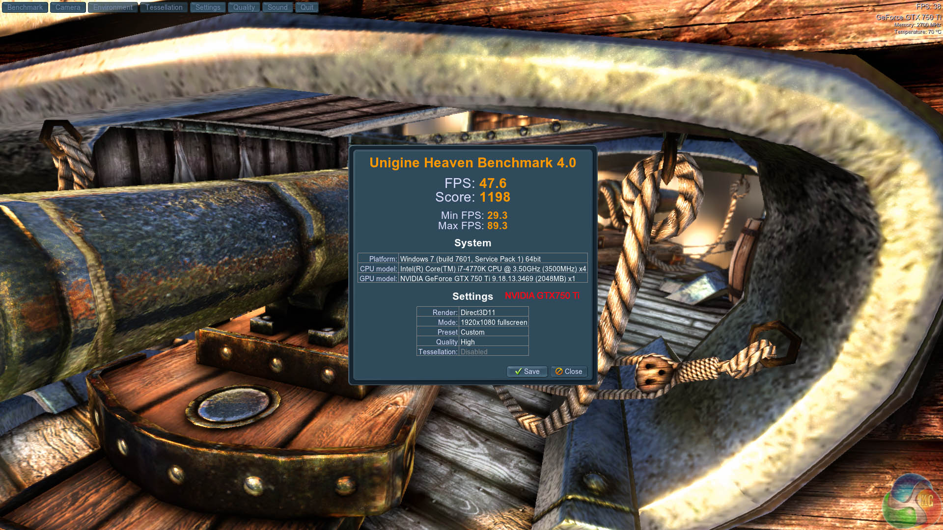 Heaven Benchmark is a DirectX 11 GPU benchmark based on advanced Unigine engine from Unigine Corp. It reveals the enchanting magic of floating islands with a tiny village hidden in the cloudy skies. Interactive mode provides emerging experience of exploring the intricate world of steampunk.