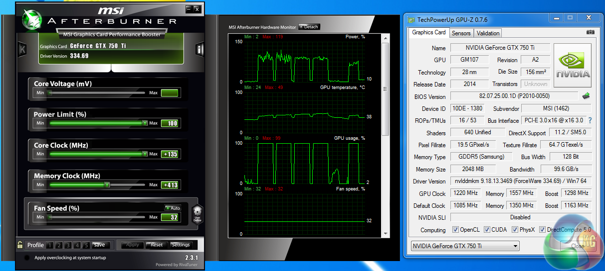 To overclock the MSI GTX750 Ti OC Twin Frozr, we used the latest version of MSI Afterburner, which is based on RivaTuner.
