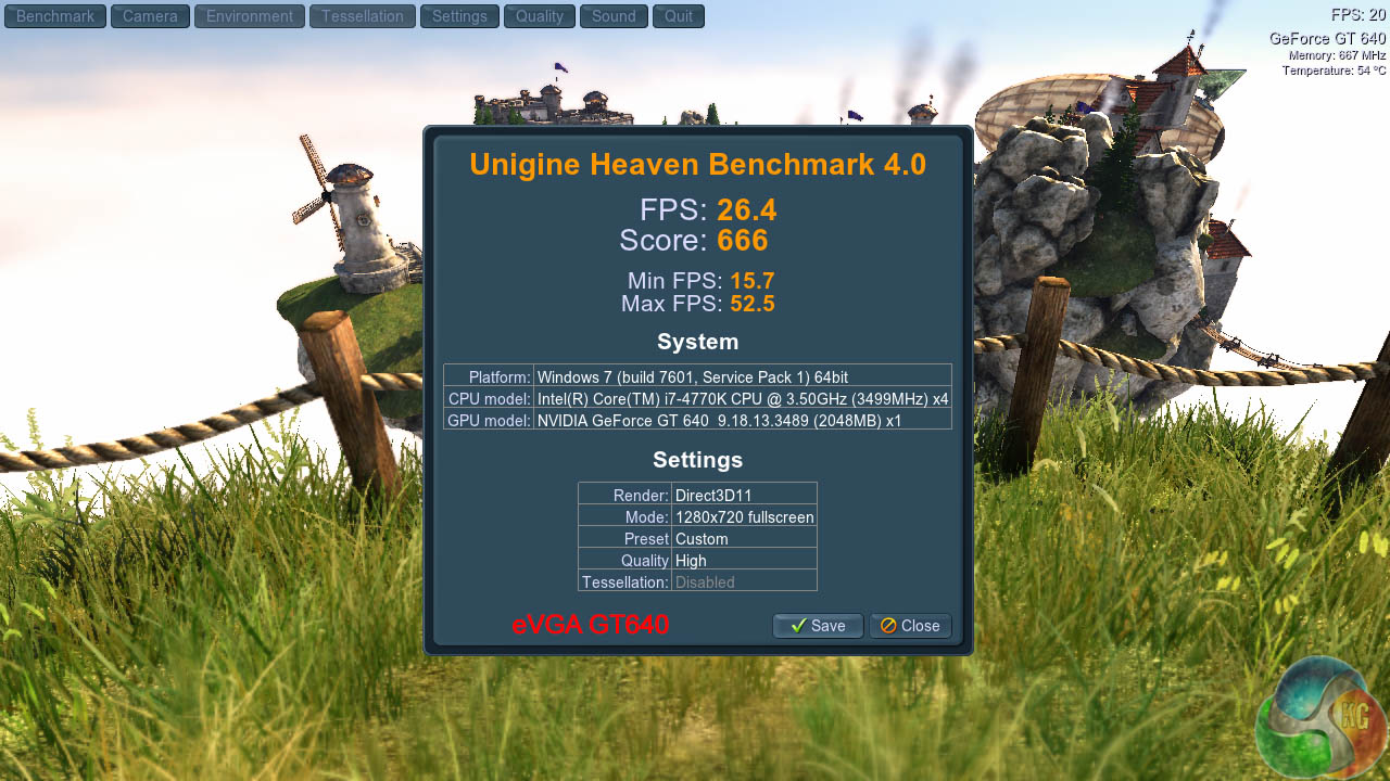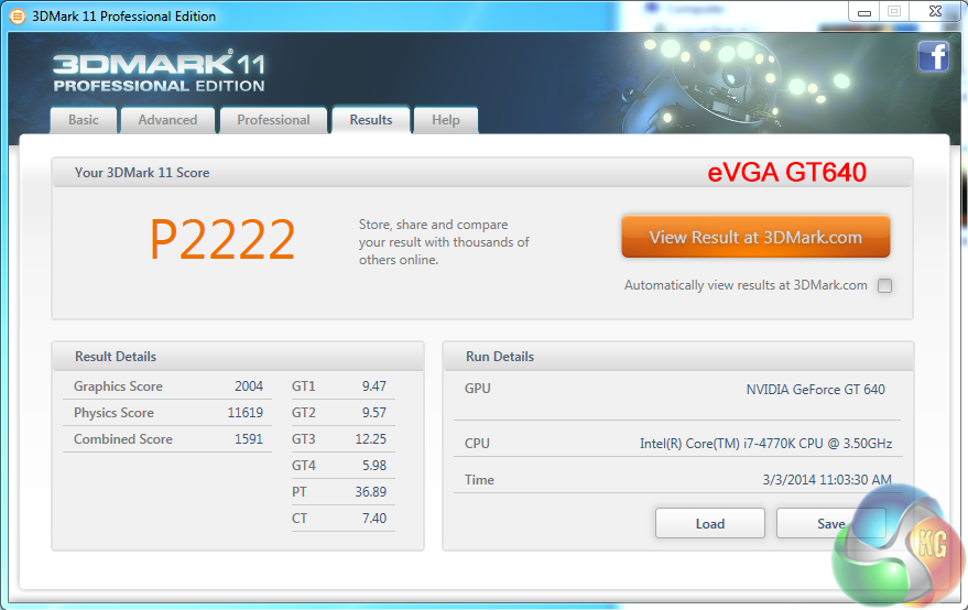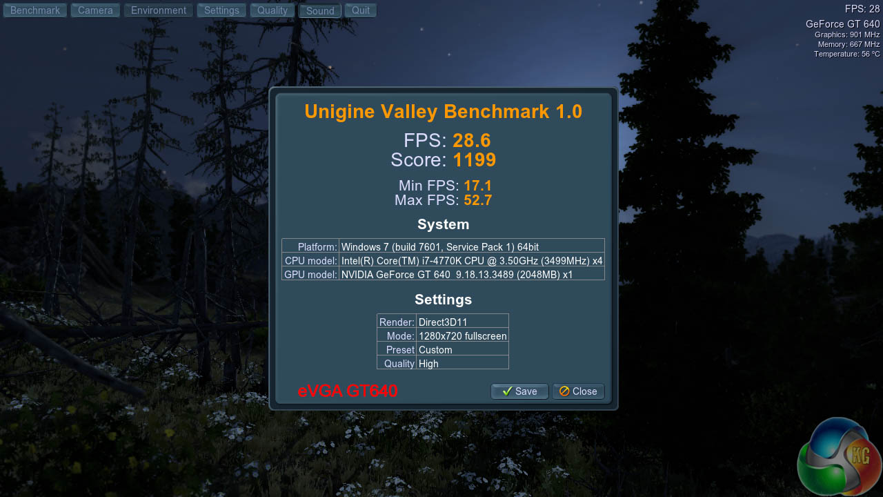 eVGA GTX640 2GB (902mhz core / 667 mhz memory) – Forceware 334.89. £79.65 inc vat.
