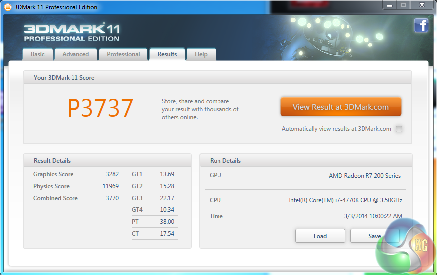 The additional overclock helps improve the graphics score in this benchmark to 3,282 points.
