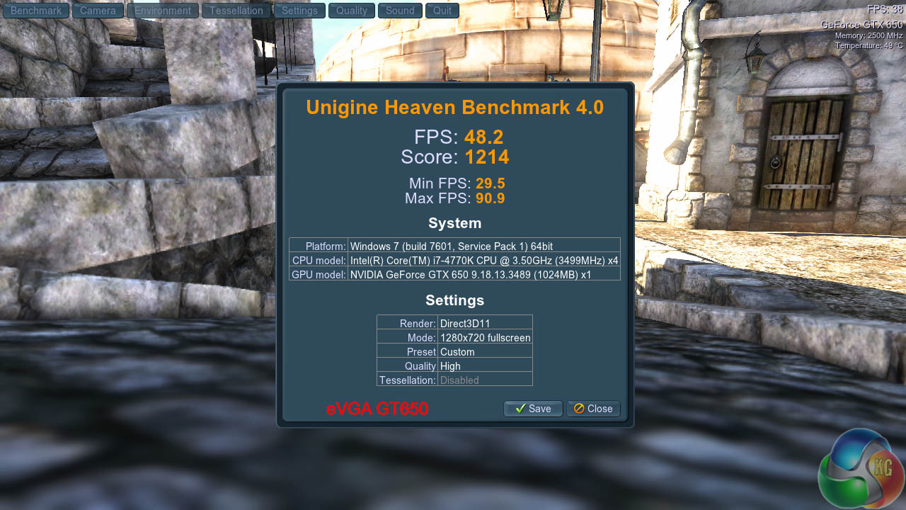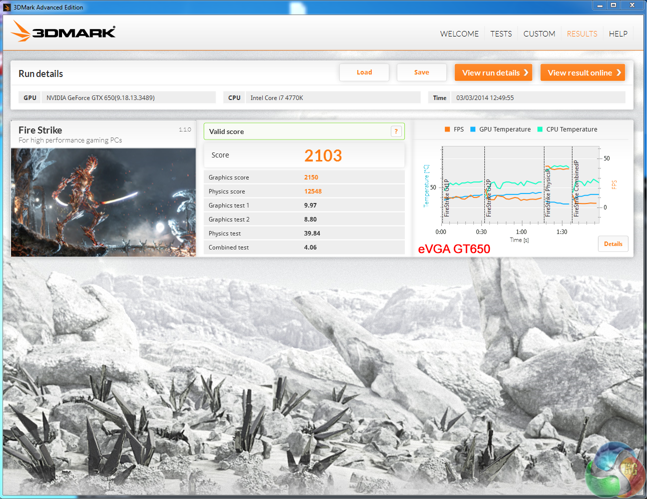 eVGA GTX650 1GB (1059mhz core / 1,250 mhz memory) – Forceware 334.89. £64.96 inc vat