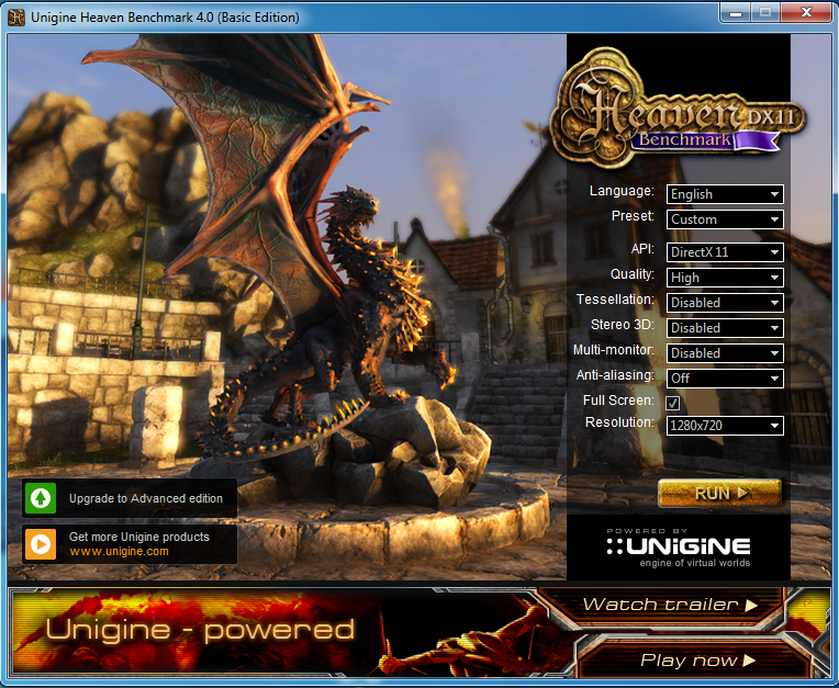 Heaven Benchmark is a DirectX 11 GPU benchmark based on advanced Unigine engine from Unigine Corp. It reveals the enchanting magic of floating islands with a tiny village hidden in the cloudy skies. Interactive mode provides emerging experience of exploring the intricate world of steampunk.