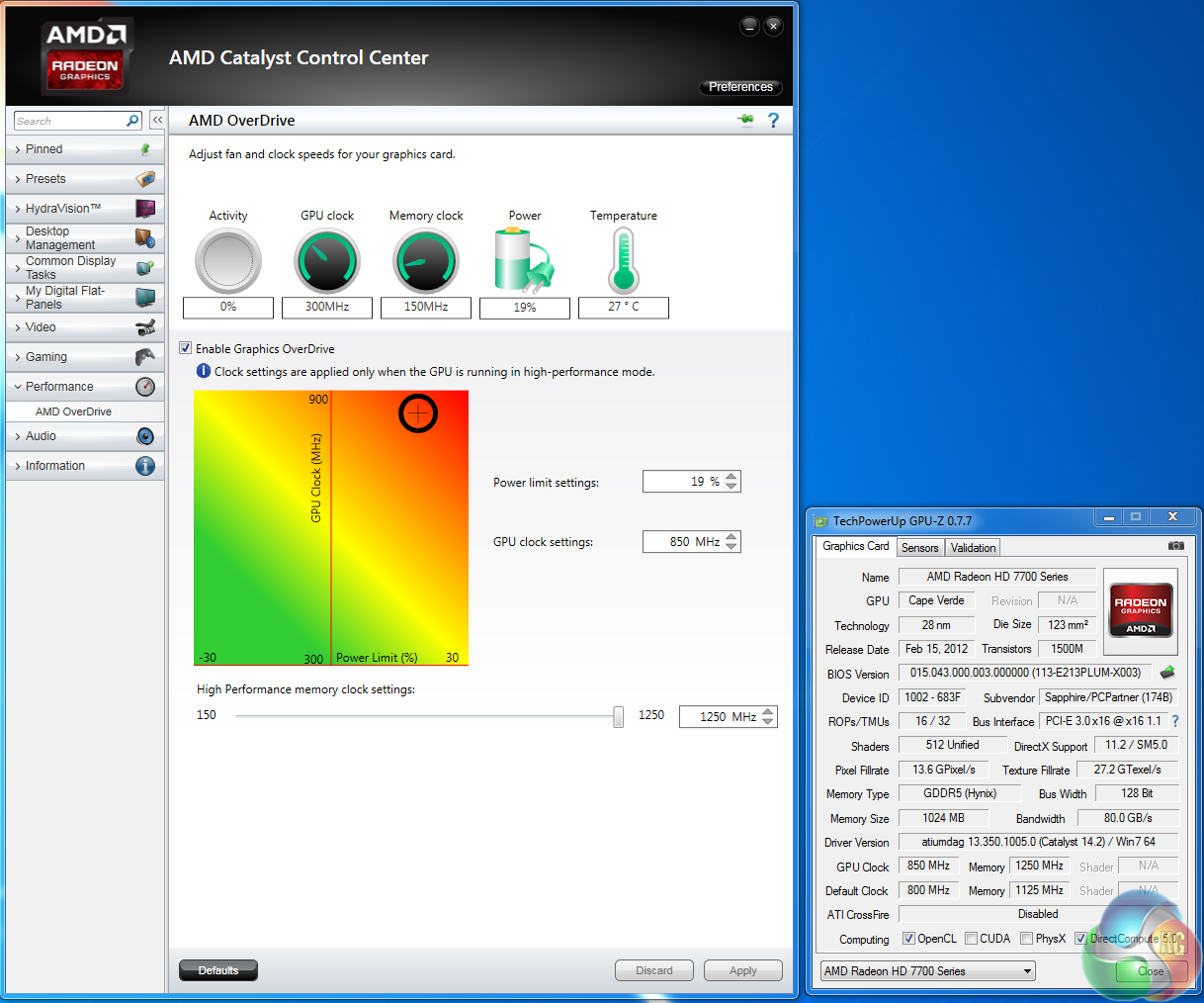 We wouldn't recommend you overclock a passively cooled card, as the tolerances can often be close to borderline, especially if you are installing into a chassis with poor airflow. For the purposes of this review however we used the AMD Catalyst Control center to overclock the Sapphire R7 250 Ultimate today.