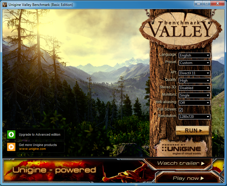 Valley Benchmark is a new GPU stress-testing tool from the developers of the very popular and highly acclaimed Heaven Benchmark. The forest-covered valley surrounded by vast mountains amazes with its scale from a bird’s-eye view and is extremely detailed down to every leaf and flower petal. This non-synthetic benchmark powered by the state-of-the art UNIGINE Engine showcases a comprehensive set of cutting-edge graphics technologies with a dynamic environment and fully interactive modes available to the end user.