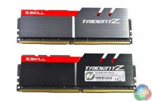 Capacities available through the Trident Z brand range from 8GB kits (2x4GB) all of the way up to 64GB sets (4x16GB). A notable omission is an eight-module 128GB kit, although this is understandable given G.Skill's focus on the Z170/Skylake platform for Trident Z memory.
