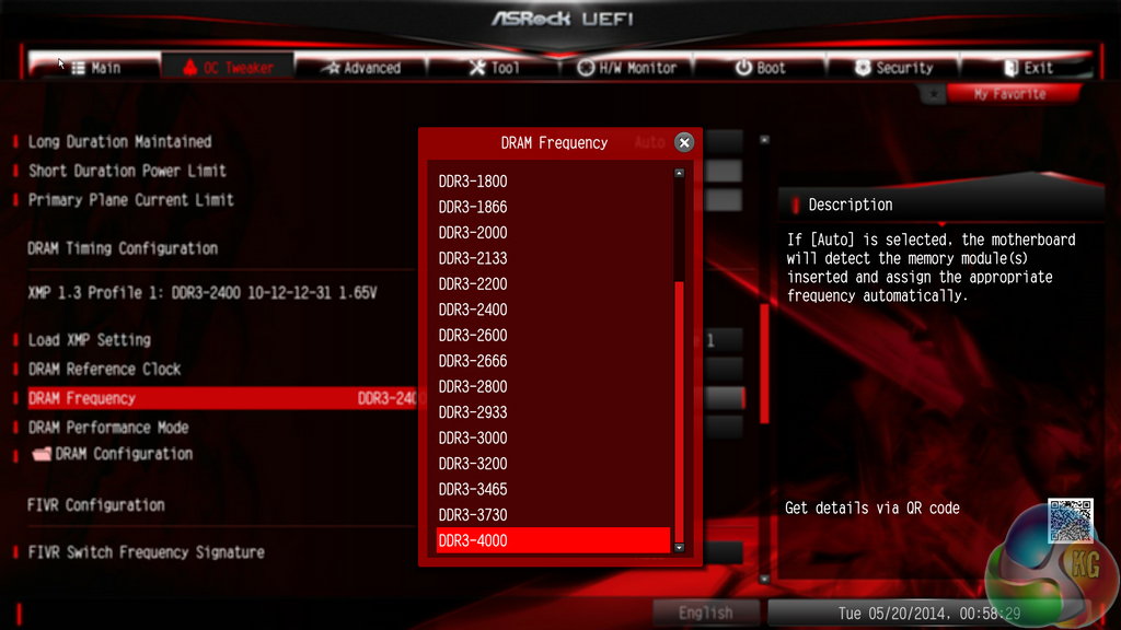 ASRock allows users to select memory dividers for DRAM frequencies of up to 4GHz. That kind of multiplier is going to be impossible to reach for Haswell-based chips.