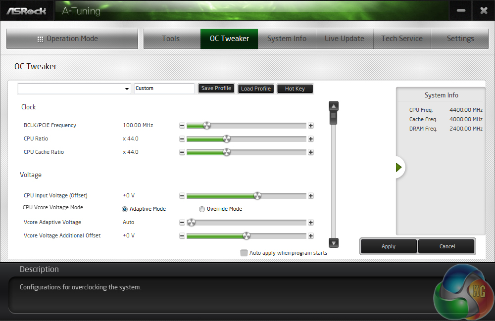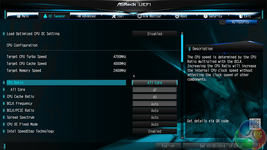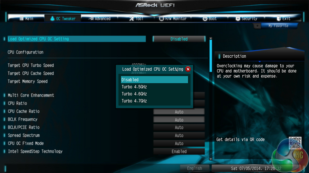 ASRock provides users with a good amount of frequency tweaking options. Automatic CPU overclocking profiles allow frequencies of up to 4.7GHz (with a 4790K installed) to be selected, although the feasibility of such settings will be tied to a CPU's potential.