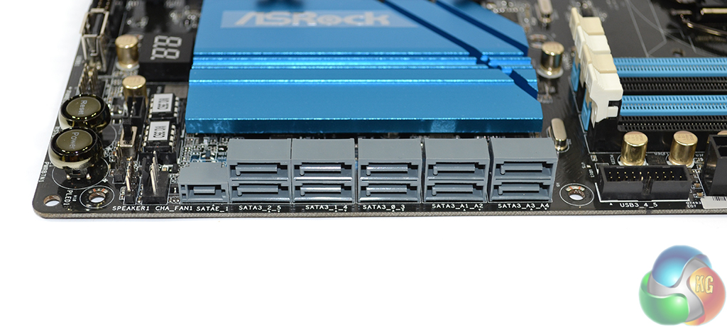 Ten SATA 6Gbps ports are provided on the ASRock Z97 Extreme6 motherboard, six of which operate from the Z97 chipset, while the other four run from two ASMedia ASM1061 host controllers.