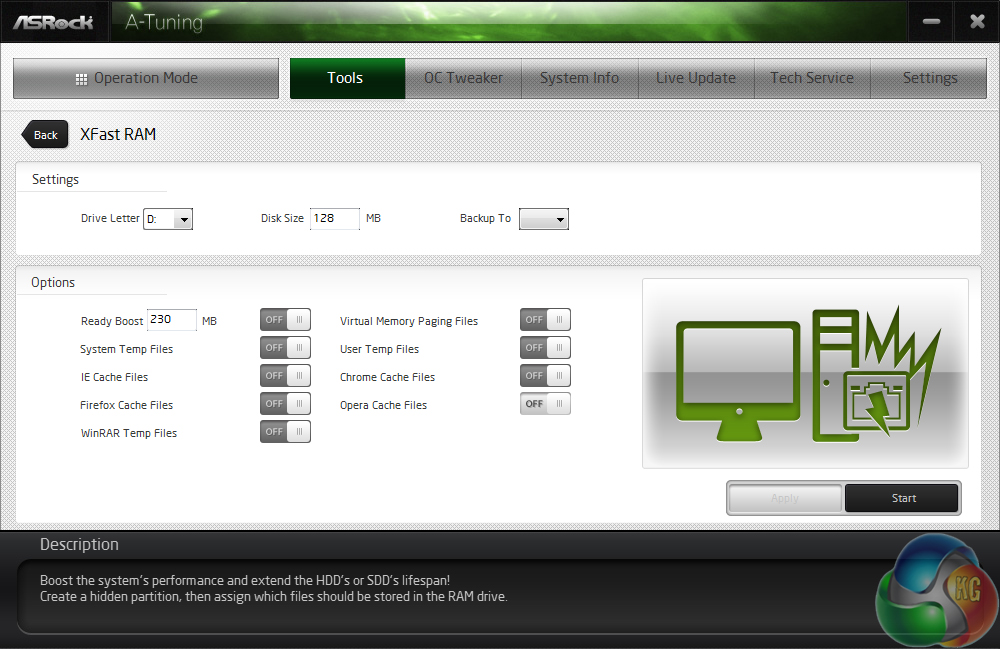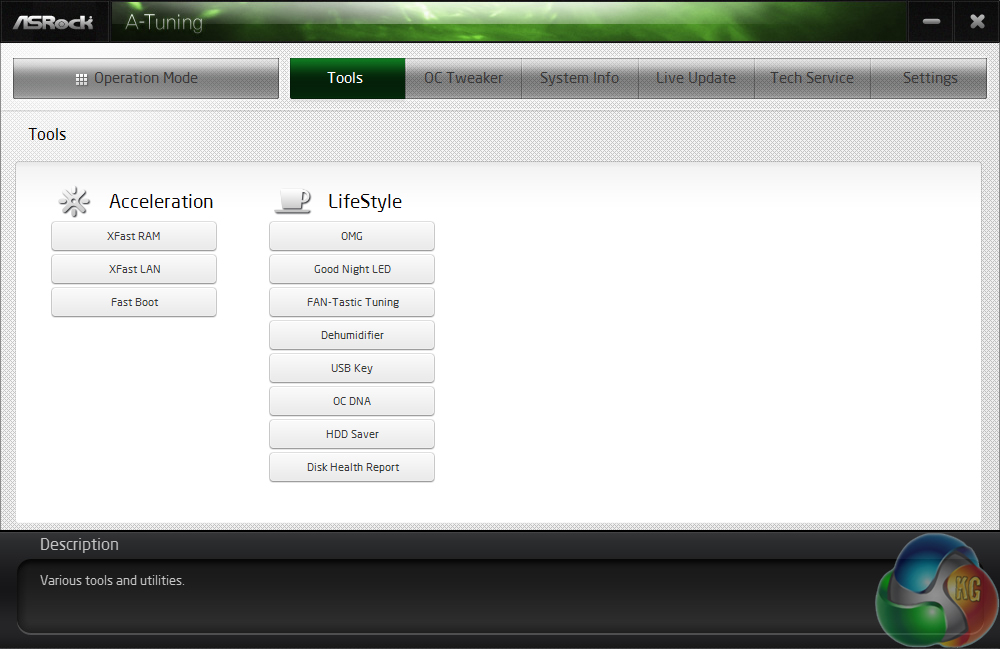 ASRock's main motherboard tools can be accessed via A-Tuning. We did notice the omission of XFast USB which seems to have been terminated by ASRock. This is a disappointment as we found the speed-boosting software to work excellently and provide noticeable results.