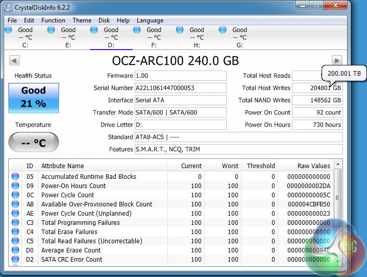 200TB is an impressive figure on an ordinary MLC drive, considering the 480GB SSD 730, bred with Intel’s own darling MLC-HET, is rated for only 128TB, and is one of the toughest MLC drives on the market.