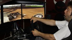 The in-car gaming action looks fast and furious – with pro-gamers queuing all day long to try and nail the fastest time in a Dirt competition. We first arrived during set-up, so this all-action shot is competely simulated. We're assured that the emotional look of joy/excitement on the driver's face is an accurate depiction of what you will be feeling.