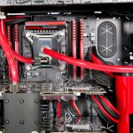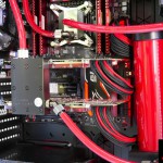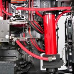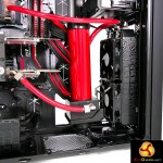 The fans on the back and bottom of the case blow fresh air into the case while the radiator fans move air outside the case. Other bits and pieces to finish the cooling system are Tygon Tubing, Alphacool connectors and Mayhems Pastel Red coolant.