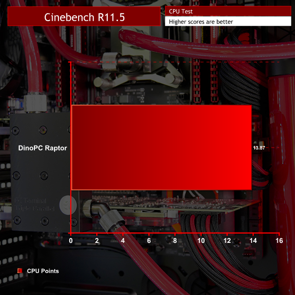 Those figures combine to suggest the Raptor should deliver some 25 percent more performance thanks to the overclocking and there is no denying the figures are impressive. The PCMark 8 and 3DMark benchmarks are ripped to shreds by Raptor and it stomps through Cinebench at quite a pace. While dual GTX 980 Ti cards clearly deliver the goods, the outstanding figure here is the CPU benchmark which demonstrates the benefit of the Haswell-E Core i7.