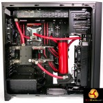 You might expect the system to get toasty warm, and that brings us to the most visually striking feature of this PC which is the extensive custom liquid cooling system.