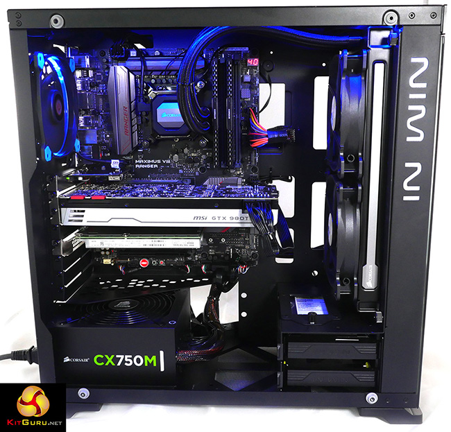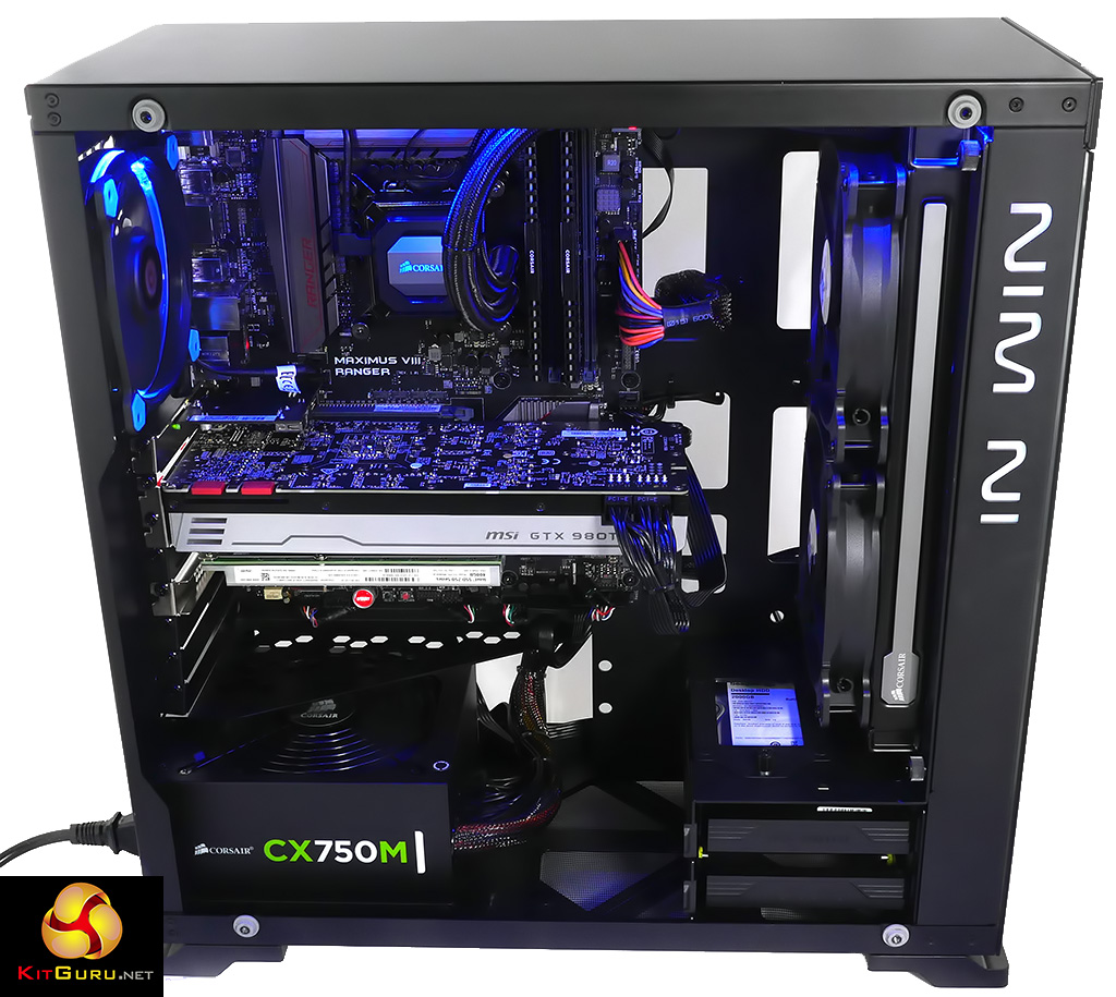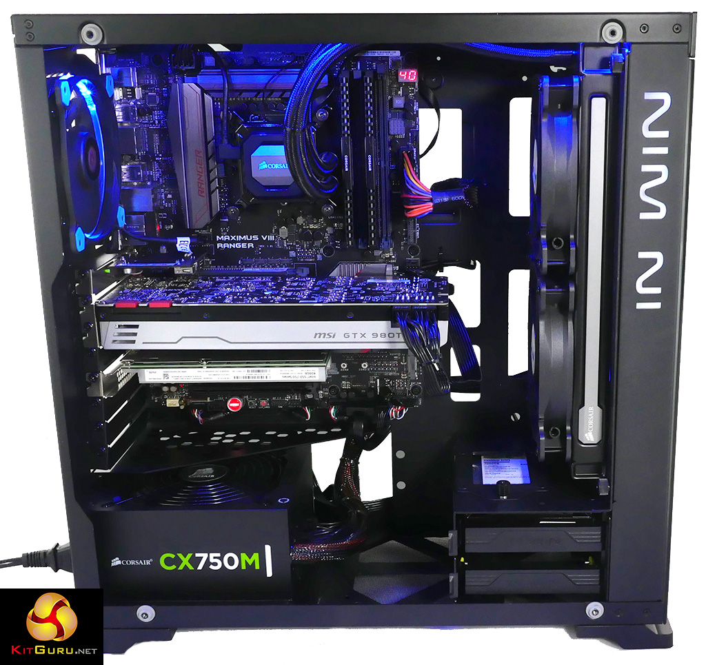 The hardware is knitted together with an Asus ROG Maximus VIII Ranger motherboard, 16GB of super-fast Corsair DDR4-3000MHz memory, a 750W modular power supply from Corsair and a copy of Windows 10.
