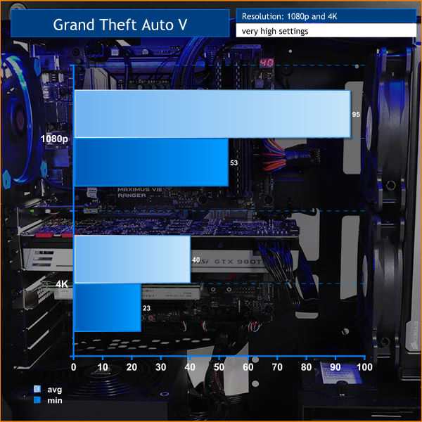 It is worth pointing out the graphics card has 6GB of memory and you require 3GB for GTA V in 1080p or 4GB in 4K so this is purely a case of the grunt you require to push all those pixels.