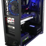 Cyberpower has taken an interesting approach with its Infinity Luxe 805 GT gaming PC. On the one hand they have pushed the specification of the hardware with an overclocked 4.7GHz Core i7-6700K and GTX 980Ti graphics card while on the other they have also emphasised the look of the PC with an In-Win 805 case with Thermaltake Riing fans front and rear. (In the video I say Riing at the rear. In fact all three fans are illuminated Riing fans).