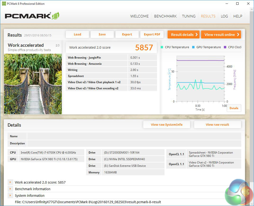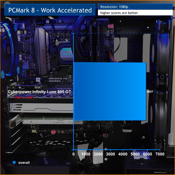 Maintaining system stability when you overclock a Core i7 is no mean feat however Cyberpower has done a fine job. The Corsair H110i GT works well, the three Riing fans all play their part and the In-Win 805 chassis allows the air to flow. The downside is that Infinity Luxe 805 GT is noisy. You would expect little else from a case that has glass panels and not even a scrap of noise deadening material but that doesn't change the fact that the level of radiated noise gets annoying.