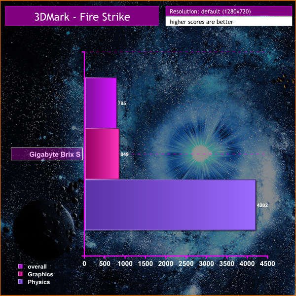 Our benchmarks results in PC Mark 8, 3D Mark and MediaEspresso 6.7 show the BRIX S is a decent little PC that has relatively weak graphics. By the standards of previous Intel silicon the HD Graphics 5500 part of the chip is excellent and the drivers works as well as any we have seen from Intel. On the other hand, while the BRIX S can manage the Cloud Gate test is 3D Mark with reasonable results, although it falls off a cliff in Fire Strike. The graphics are competent but fall short of the ability to play ‘proper' games.