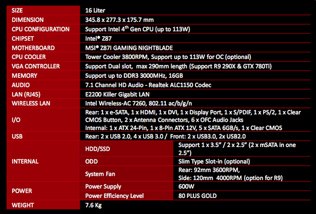 MSI will be selling the Nightblade chassis in a barebones configuration however some of their partners such as Scan, Overclockers UK, Yoyotech, Cyberpower UK and MESH will be selling in a fully configured state. This makes sense, because while many people like to build their own system, some just don't want to deal with the hassle, especially when working in the confines of such a small chassis.