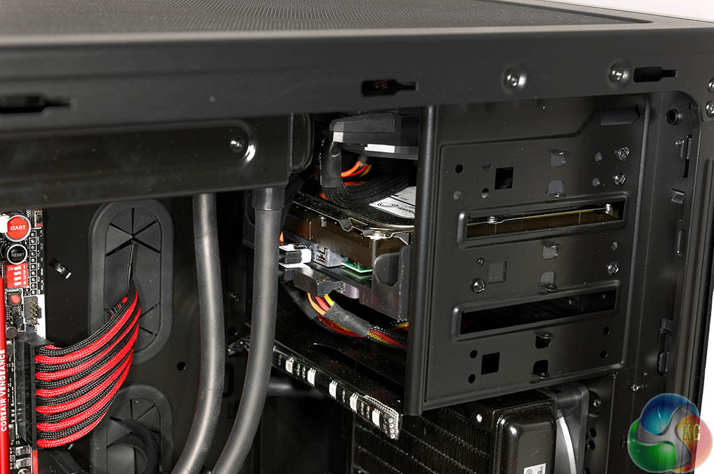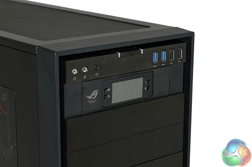 No optical drive is fitted inside the system which is no great loss. OverclockersUK have fitted the ROG OC panel here, along with the 2TB Seagate Barracuda drive and 500GB Samsung 840 EVO SSD. If you need a bluray optical drive then you could always buy an external USB drive – for around £60.