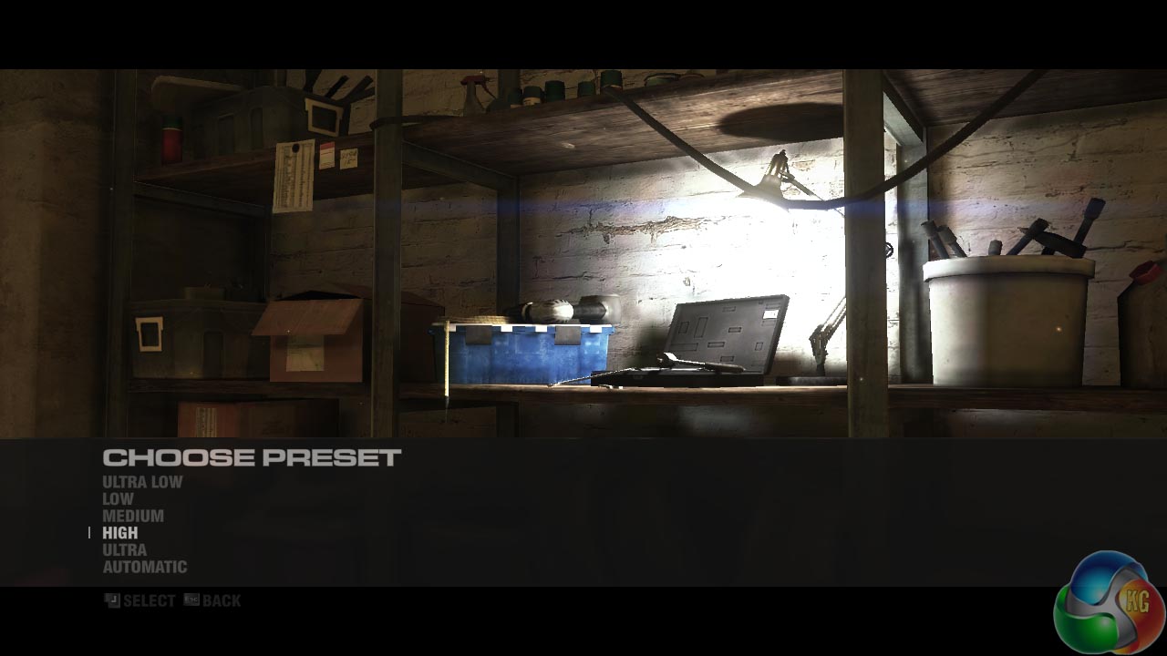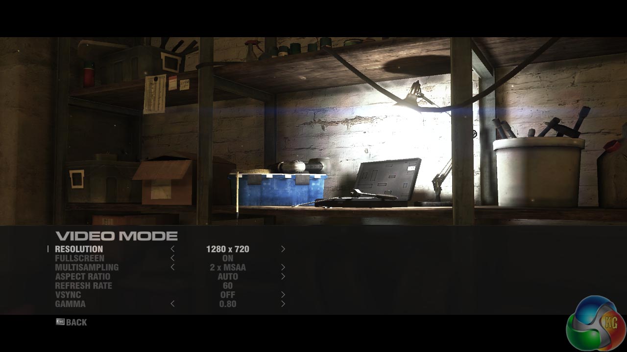 We test at both 720p and 1080p resolutions. At 1280×720 we select ‘high' quality preset. To achieve playable frame rates at 1920×1080 we dropped the image quality settings to the ‘normal' preset.
