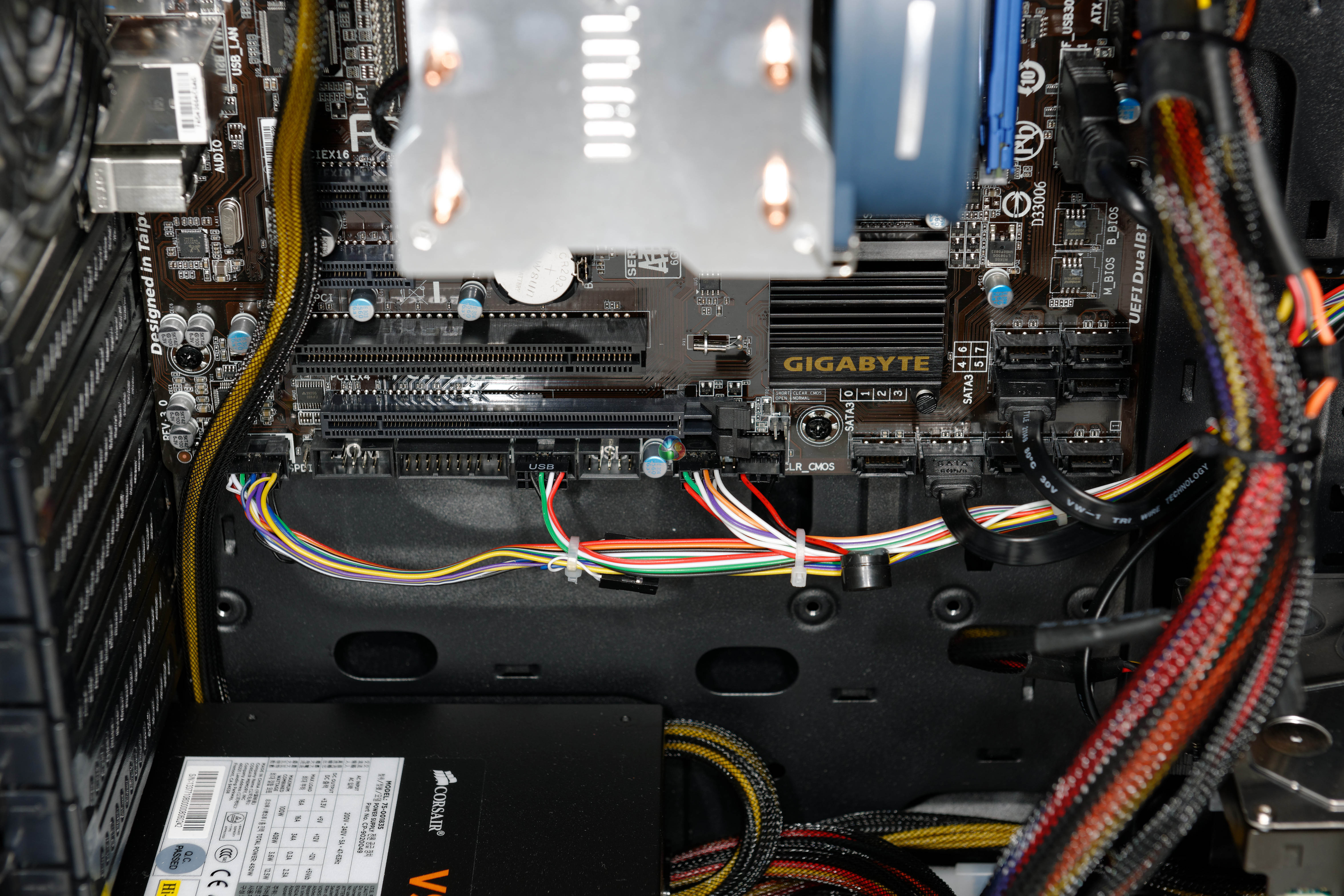 The internal build is clean although there are not a lot of cable routing holes in the motherboard panel. This has forced a lot of the cables to be in plain view, just above the bottom mounted case fan and behind the hard drive.