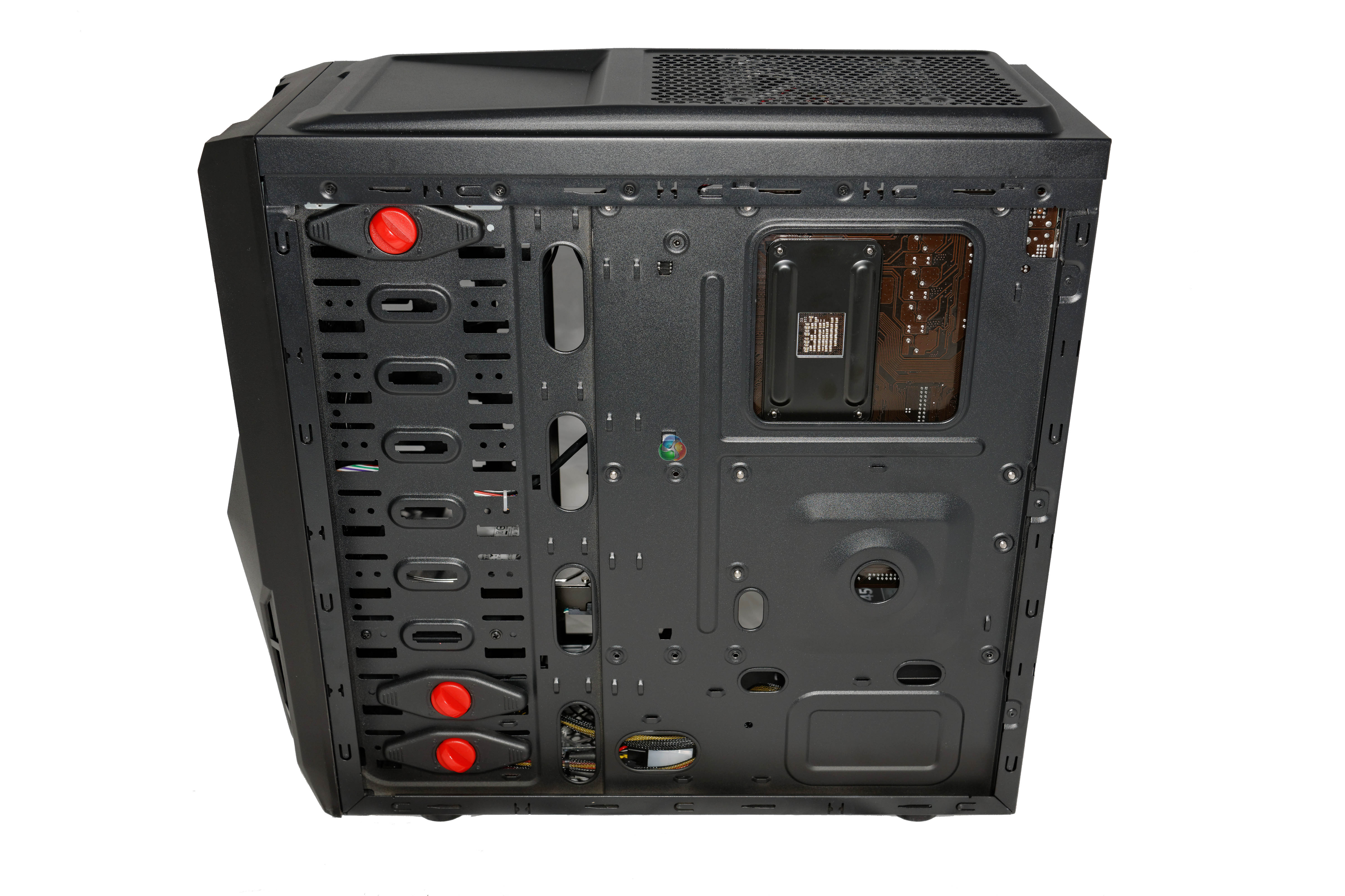 As we mentioned earlier, the budget ALPHA TRION 7622B chassis has very little space for routing cables behind the motherboard tray, so the other side of the system is ‘cable free'.