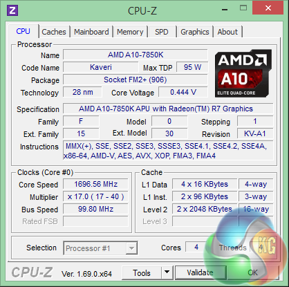 As mentioned earlier in the review, this system is based around the new AMD A10 7850K APU. This processor has 4 Streamroller X86 computing cores with support for the latest ISA instructions, including FMA4/3, AVX, AES, XOP. There is up to 2MB L2 cache per dual core module. This PC Specialist system does not ship with a discrete graphics card, the A10 7805K itself has the graphics embedded.
