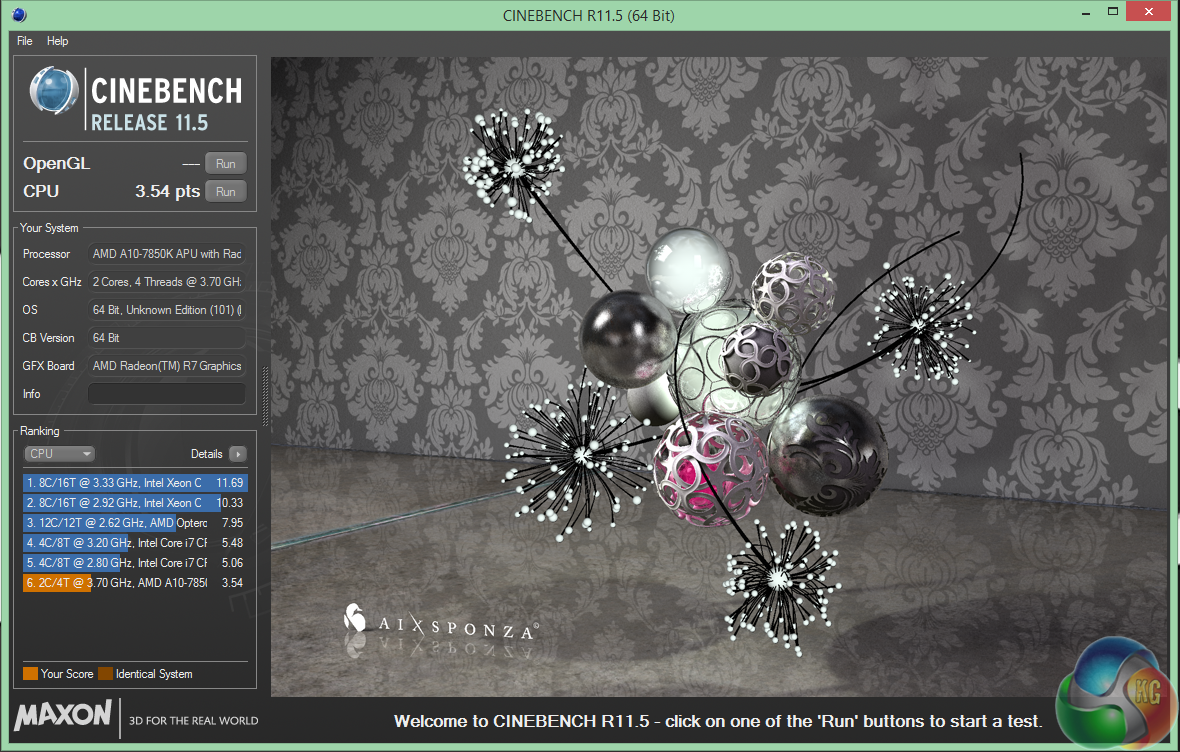 This is an incredibly difficult suite for a low cost system such as this. The results do point out that the Infinity 7850K system should be able to handle modest DirectX 11 game settings at 720p.