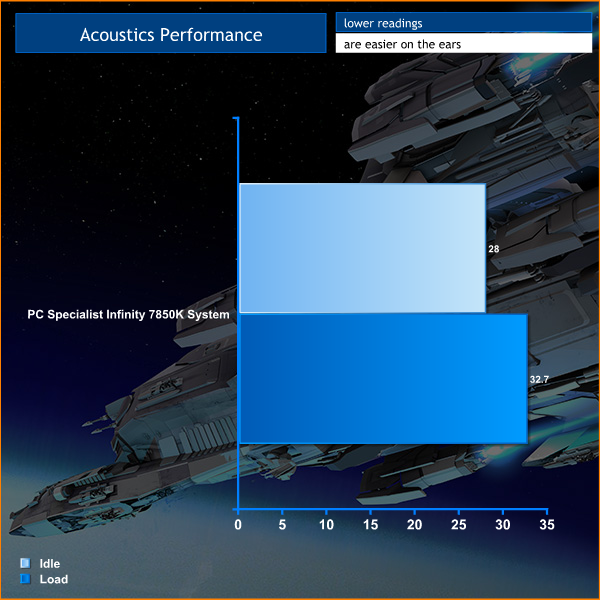 This is an extremely quiet system, and barely measures on our noise meter. At idle it would be classed as almost silent and when the CPU is under load the noise levels do not increase much at all. This is a perfect system for a bedroom or living room, when noise could be considered extremely annoying.
