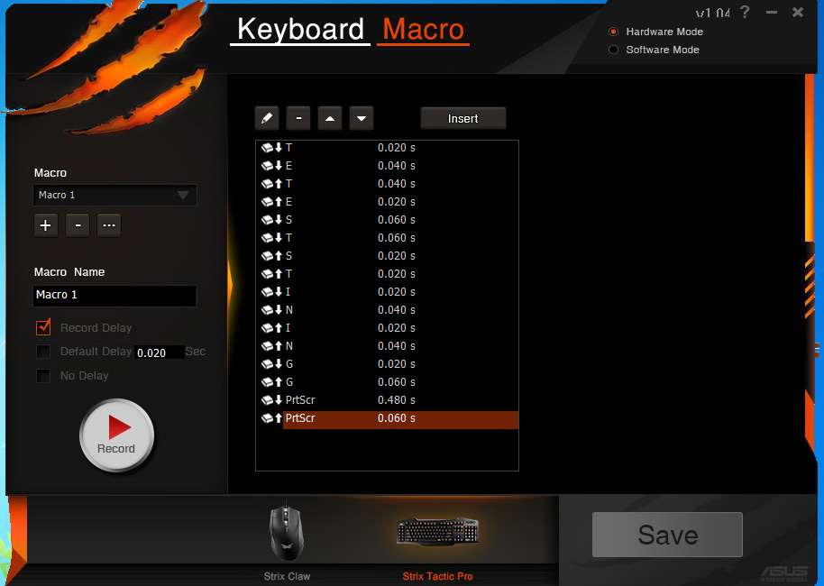 The Strix Tactic Pro does have notable features which will help it stand out in a very crowded marketplace. It has clear, concise back-end software which allows for quick and easy macro recording and key remapping. It has more macro keys than you are ever likely to need, most of which are intelligently positioned. It has some basic media keys which work well and the ability to press almost every key on the board simultaneously is a welcome addition.