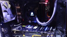 Both Kitguru and PCSPECIALIST agreed that the Corsair H100i Hydro Series cooler was the best bet. It has proven popular with the enthusiast public, especially as it leaves plenty of space free across the ram slots. The image above shows the Kitguru test rig with a Sapphire HD7970 6GB Toxic Edition installed, but PCSPECIALIST offer a wide variety of AMD or NVIDIA partner cards in their configurator.