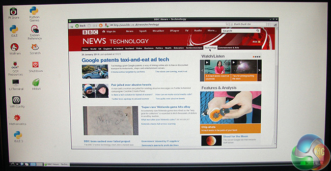 Connecting the power turns the Pi on and I watched a whole bunch of boot text scroll up the screen. I entered the default Linux log-in details and the command ‘startx' which initiated the GUI and bingo I had a computer that was on-line with a Midori browser.