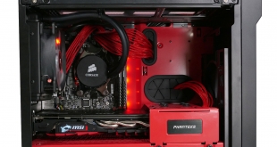 Balanced against that we have the cosmetic appeal. Black and red is a classic colour combination and the Phanteks Enthoo Evolv ITX case looks superb. We love the way that DinoPC has topped off the cosmetics with cable extensions that look good while keeping the mess out of sight at the rear of the case.