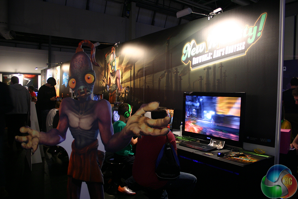 Although – understandably – the indie booths don't tend to be quite as busy with extras as the AAAs, this one from the guys remastering Abe's Odyssey and Exodus had a life size cut out of Abe himself, as well as a PS1 set up showing the original game in all its glory on a 14″ CRT TV.
